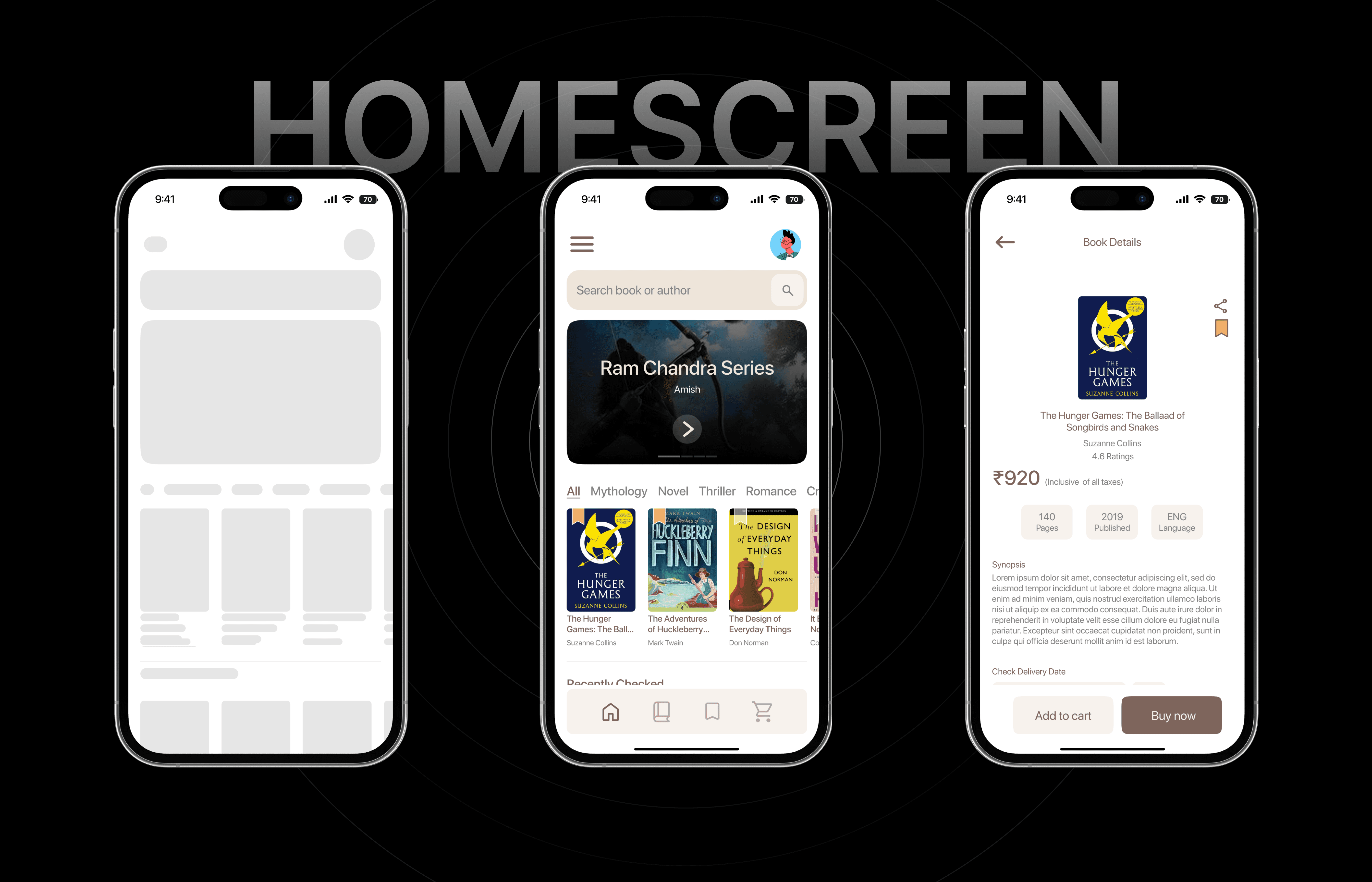 I designed a user-friendly interface for a book-buying app that allows users to explore and purchase books seamlessly. The design features an intuitive search bar, categorized genres, a visually appealing carousel for book series, and an easy-to-navigate bottom menu, ensuring a delightful shopping experience for book lovers.